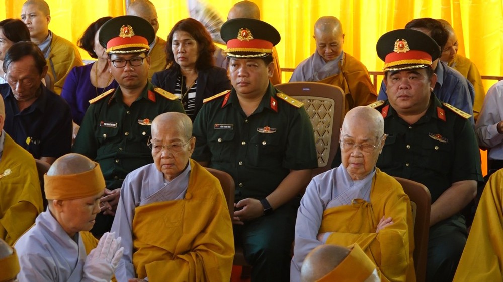 Quang lâm chứng minh buổi lễ, có Hòa thượng Thích Huệ Thông - Phó chủ tịch HĐTS, Trưởng ban Pháp chế TƯ GHPGVN; Hòa thượng Thích Niệm Thới - Ủy viên HĐTS, Trưởng BTS PG tỉnh, Trưởng ban tổ chức; Hòa thượng Thích Minh Thiện - Ủy viên HĐTS, Phó ban Hoằng pháp TƯ, Trưởng BTS PG tỉnh Long An; Thượng tọa Thích Phước Nguyên - Phó tổng Thư ký HĐTS, Văn Phòng 2 TƯ; Thượng tọa Thích Minh Nhẫn - Ủy viên Thư ký HĐTS, Phó Văn Phòng 2 TƯ; Hòa thượng Thích Thiện Tâm - Ủy viên HĐTS, Phó trưởng ban Thường trực BTS PG tỉnh; Hòa thượng Thích Tịnh Thành – Phó ban Pháp chế TƯ, Chứng minh Ban điều hành Núi Bà; Thượng tọa Thích Quảng Tiến - Ủy viên HĐTS, Phó Văn Phòng 2 TƯ; Thượng tọa Thích Phước Triều - Ủy viên HĐTS, Trợ lý Tổng Thư ký HĐTS, cùng chư Tôn đức chứng minh, chư Tôn đức Tăng Ni trụ trì các tự viện đồng về tham dự.