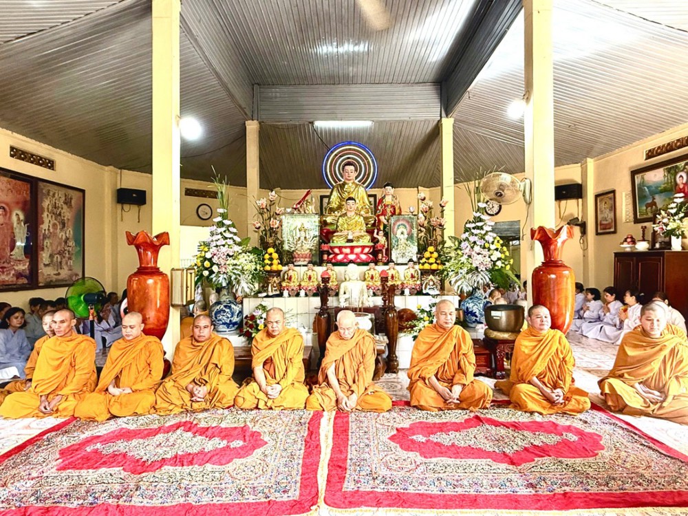 Chư Tôn đức Tăng Ni cùng toàn thể đạo tràng quang lâm Chánh điện nhất tâm niệm hương cầu nguyện Quốc thới Dân an.