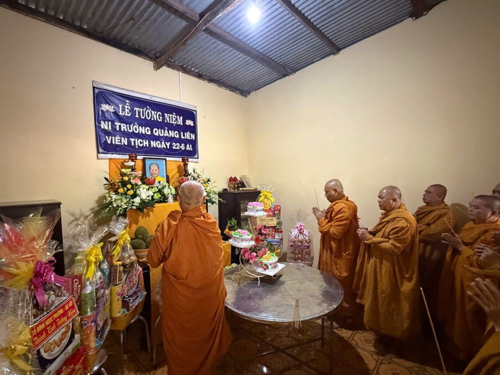 Chư Tôn dức Tăng Ni cùng toàn thể đạo tràng quang lâm Giác linh đài nhất tâm niệm hương cầu nguyện Giác linh cố Ni Trưởng Quảng Liên viên tịch ( Pháp tử Đức Tổ sư Minh Đăng Quang, cố Viện chủ Tịnh xá Ngọc Thuận ) sớm “ Cao Đăng Phật Quốc ”.