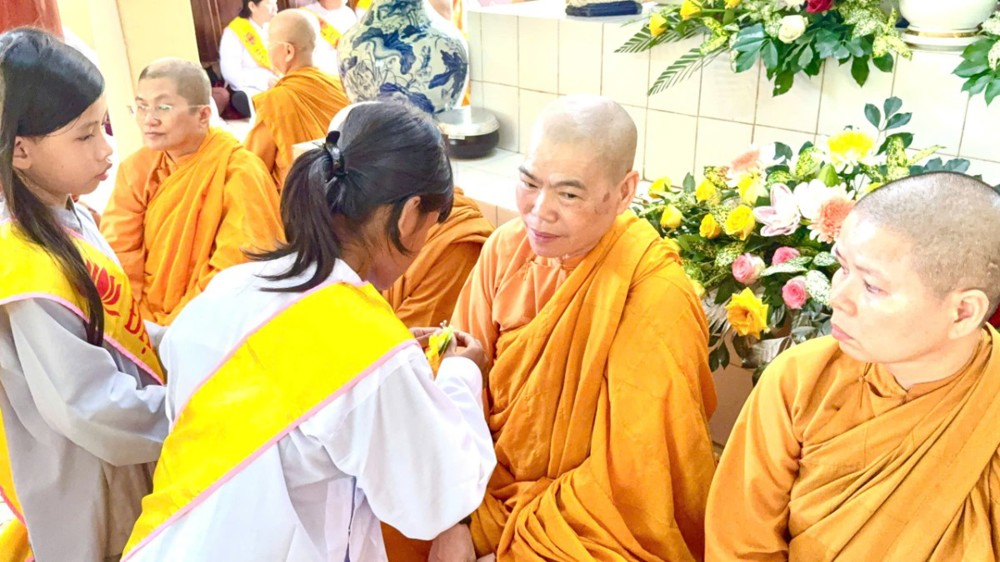 Đại đức Thích Huệ Chơn (Minh Đăng) – Phó Thư ký Giáo đoàn 6, Phó Ban Trị sự (BTS) GHPGVN tỉnh Tây Ninh phụ trách HPKS tỉnh, trụ trì tịnh xá Ngọc Như (xã Hảo Đước, tỉnh Tây Ninh) điều phối chương trình và thay lời BTC nêu lên ý nghĩa của lễ cài hoa hồng tưởng nhớ công ân Cha mẹ và hướng dẫn quý Phật tử đạo tràng Tịnh xá Ngọc Thuận thực hiện nghi thức cài hoa hồng. Với màu vàng rực rỡ kính dâng lên bậc xuất gia đã từ bỏ hạnh phúc riêng tư để dẫn dắt nhiều người đến với sự an lạc. Hồng đỏ cho những ai hạnh phúc khi còn đầy đủ hai đấng sinh thành, hồng nhạt cho những ai mất mẹ hoặc mất cha, chia buồn cho những ai cài trên ngực áo màu hoa trắng vì đã mất đi cha và mẹ.