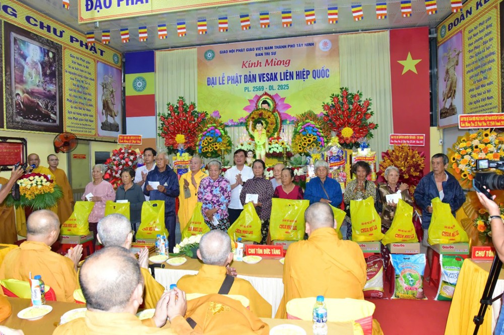 Nhân dịp đại lễ Phật Đản Vesak 2025, BTS GHPGVN TP Tây Ninh phát 100 phần quà ( mỗi phần trị giá 600.000 đồng ) cho đồng bào còn khó khăn trên địa bàn TP Tây Ninh.